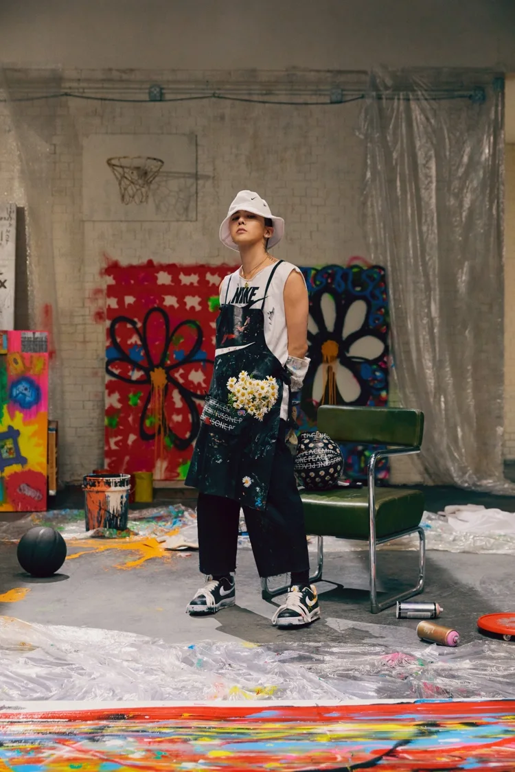 The G-Dragon x Nike Air Force 1 Para-Noise Sneaker is an art piece in itself, featuring a black upper that reveals G-Dragon’s artwork as it wears, with his PEACEMINUSONE imprint on the inner sockliner and light paint streaks on the midsole. The final touches include PEACEMINUSONE’s signature daisy logo on the tongue and removable pins on the upper eyelets, making this sneaker a bold blend of style and creativity.
