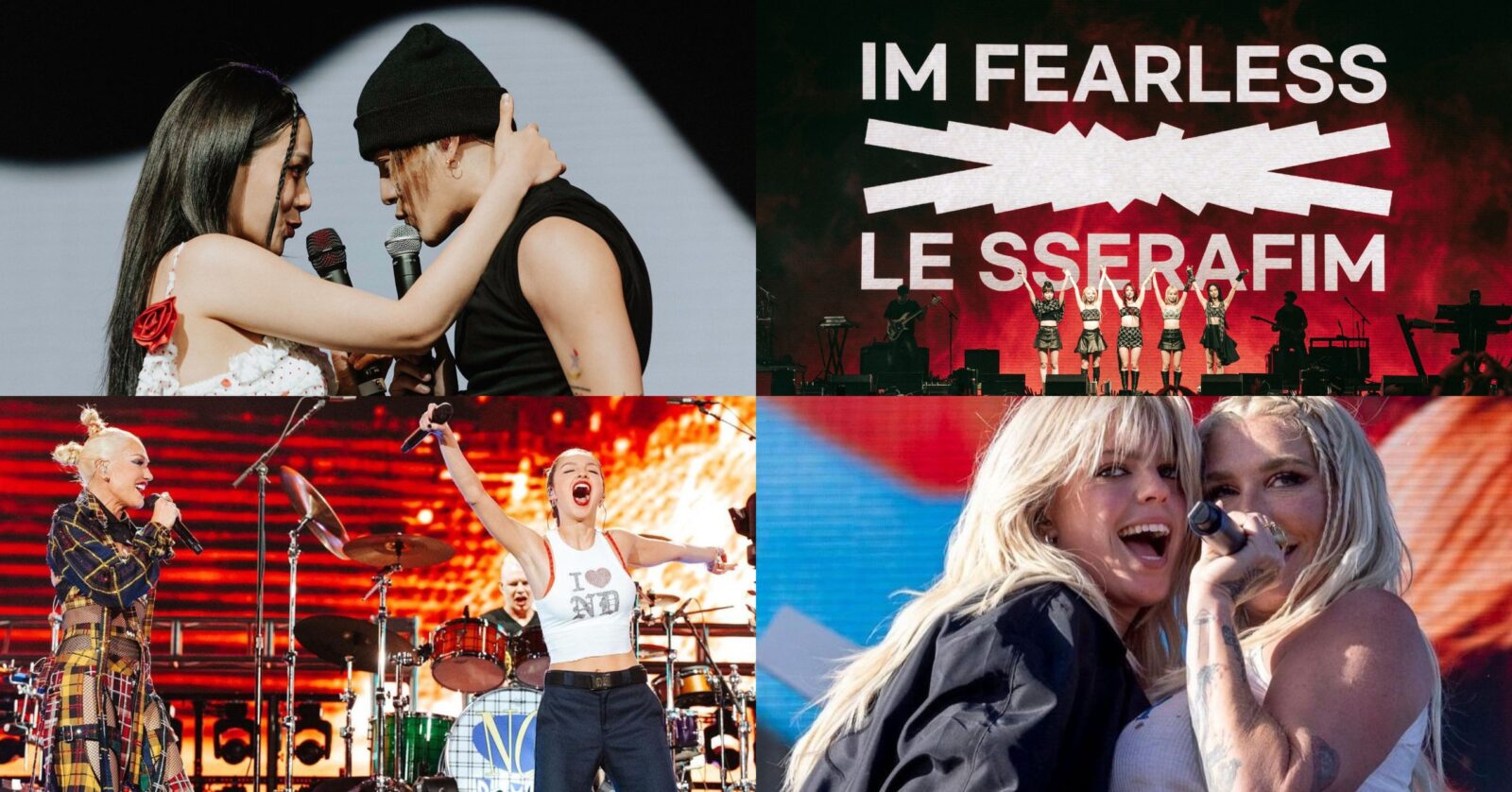 Bibi and Jackson Wang: Courtesy of @teamwangofcl. Le Sserafim, Gwen Stefani, Olivia Rodrigo: Courtesy of @coachella. Renee Rapp and Kesha: Courtesy of @kesha.
