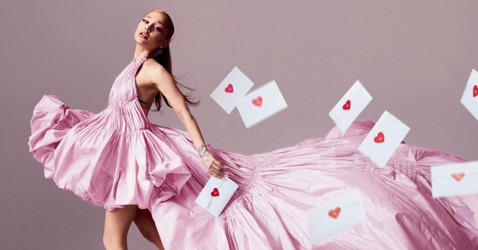 The announcement post features Grande in a flowing pink gown with a dramatic train, surrounded by floating love letters adorned with red heart seals. She also posed with an oversized love letter marked with an ‘A’ on the heart seal. The new fragrances from the collection include Vanilla Suede, launching August 14 in the UK; Angels Kiss, available August 19 in Europe; Pink Woods, which will be online August 15 and in stores August 27 in North America; and Pressed Petals, which arrives in Australia soon.