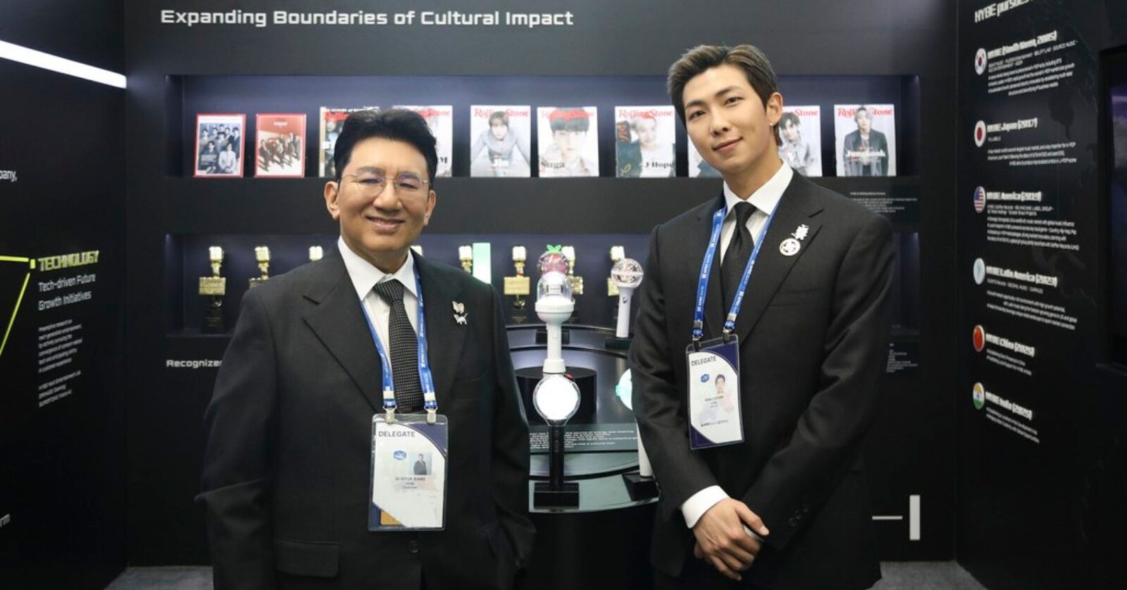 He arrived at the venue with HYBE Chairman Bang Si-hyuk, with HYBE, which is BTS’ label Big Hit Music‘s parent company, participating as a diamond sponsor, which is the summit’s highest sponsorship tier, and was the only entertainment company.