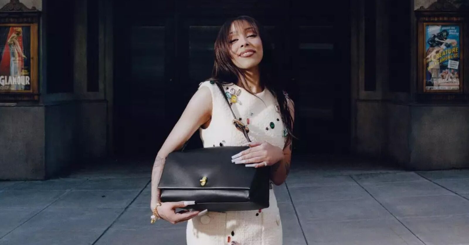 Photographed by Stef Mitchell, styled by Sydney Rose Thomas, and directed by Christian Breslauer, the campaign also marks the debut of the brand’s newest seasonal Dual Bag collection and features a sneak peek of her unreleased song, “Jealous Type,” from her forthcoming album.