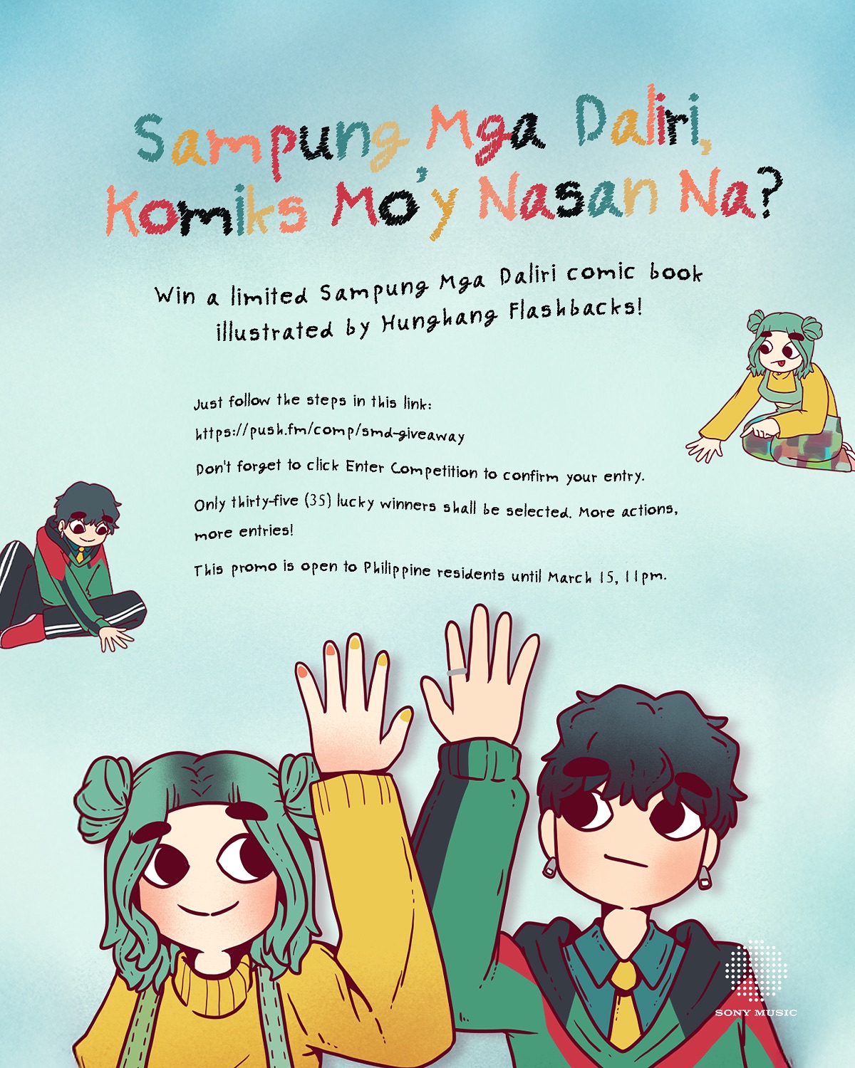 With this, Sony Music Philippines has launched a contest to give fans a chance of winning physical copies of the comic through a raffle. Those interested in entering the competition may do so here. In order to gain one (1) entry into the raffle, fans will need to do any of the following through the site: save “Sampung Mga Daliri” on Spotify, follow dwta on Spotify, follow dwta on Instagram, follow dwta on TikTok, or subscribe to dwta on YouTube. These actions, once completed, will equal to one (1) entry each after pressing the “enter competition” button. More entries means more chances of winning the comic book.