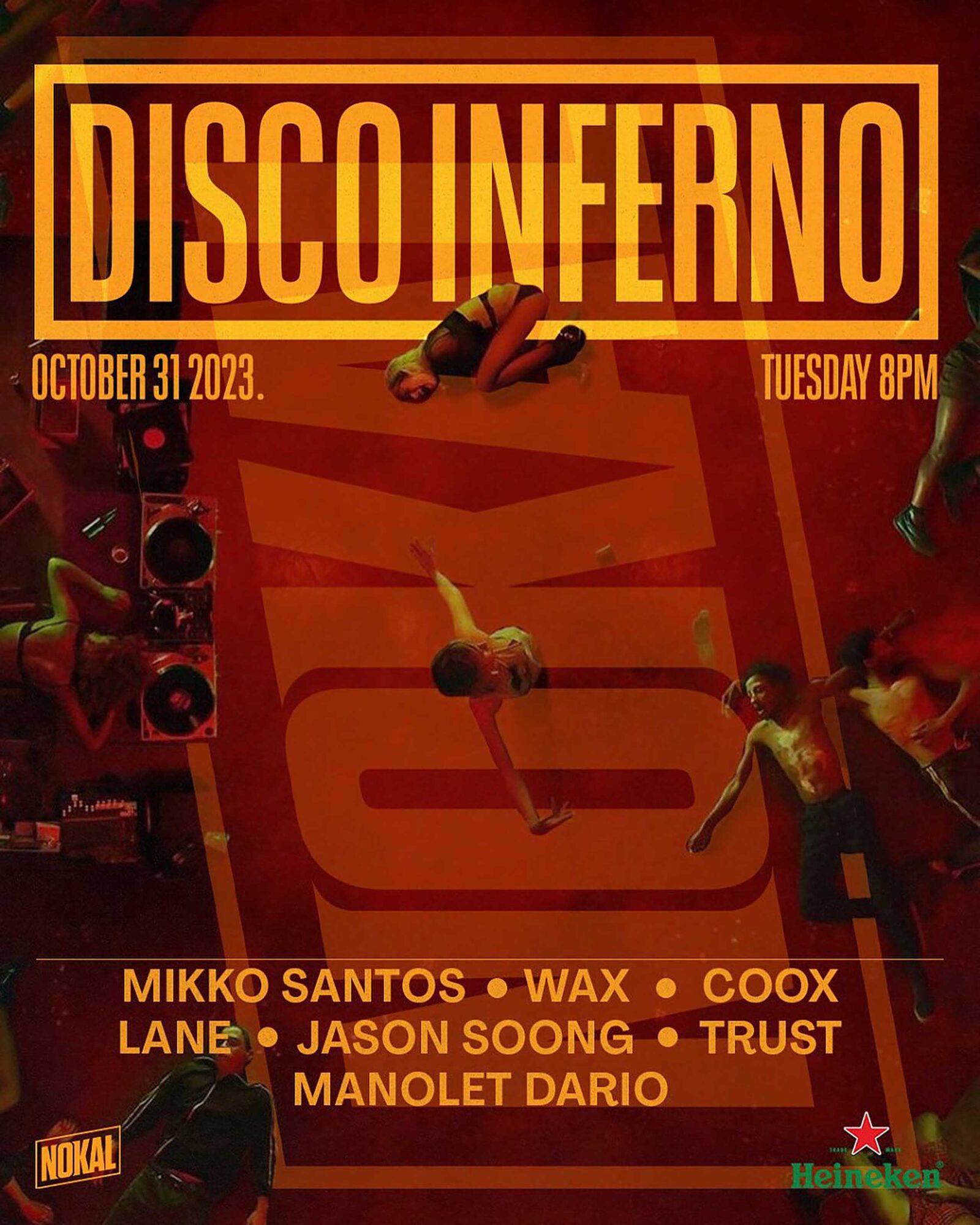 The annual “Disco Inferno” will heat up at Makati’s Nokal. Guests are asked to “dress to impress” for the party featuring Mikko Santos, Wax, Coox, Lane, Jason Soong, Trust, and Manolet Dario.