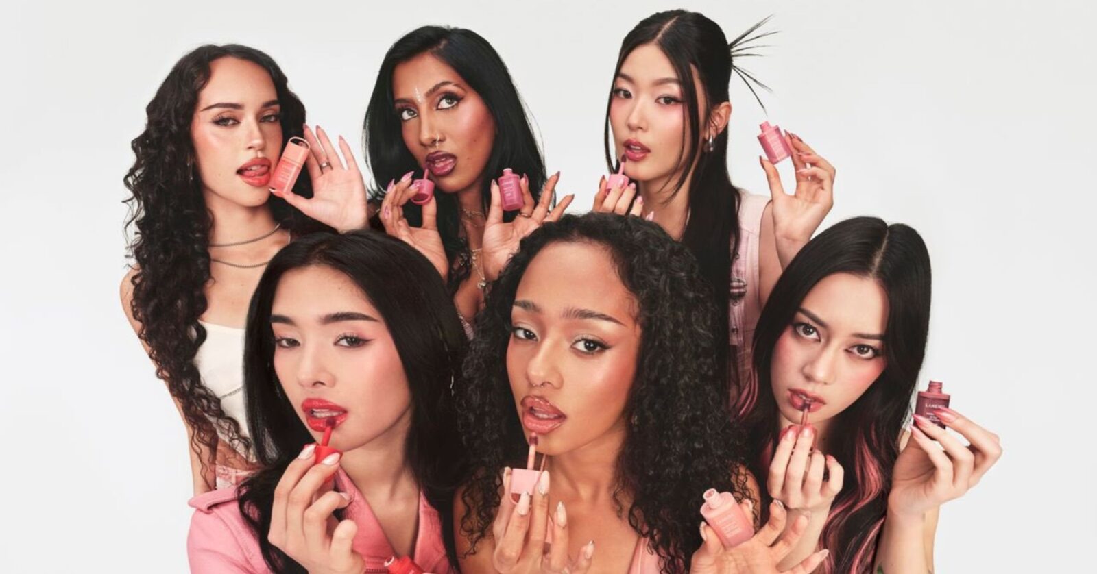 The campaign blends sound and beauty, centered around a product crafted with Laneige’s signature Water-Oil Remix Complex. The product provides up to 12 hours of wear with a lightweight formula that keeps lips hydrated and tinted all day. The collection features six shades, each represented by a member of the group: Red Classic for Sophia, DJ Plum for Lara, Pop Star Peach for Manon, Jazzy Jam for Megan, Disco Coral for Daniela, and LoFi Mauve for Yoonchae.