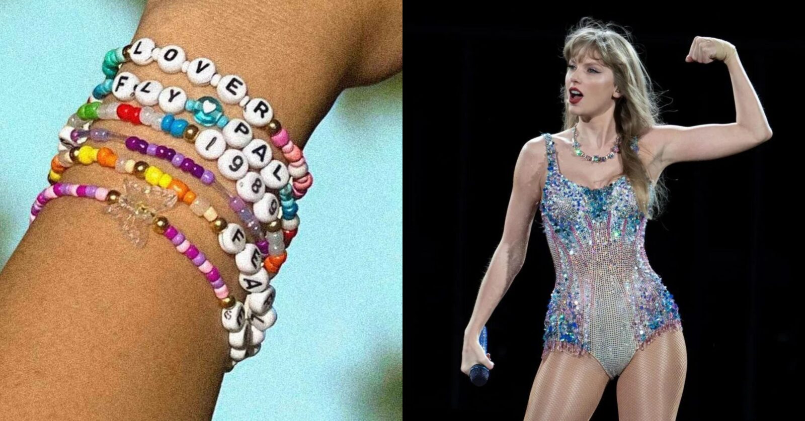 Originating from the lyric “Make the friendship bracelets, take the moment and taste it” from the track “You’re On Your Own, Kid” from her 2022 album Midnights, the friendship bracelet trend has become widely common with concertgoers of her shows, including numerous celebrities –– including her now boyfriend Travis Kelce, who first reached out to the pop juggernaut, asking to trade bracelets with her on social media. The said accessory has become a hallmark of Swiftie culture, with many of these adornments being patterned after the singer’s songs, lyrics, and more, then are traded and worn during any of the ongoing shows for the Eras Tour.