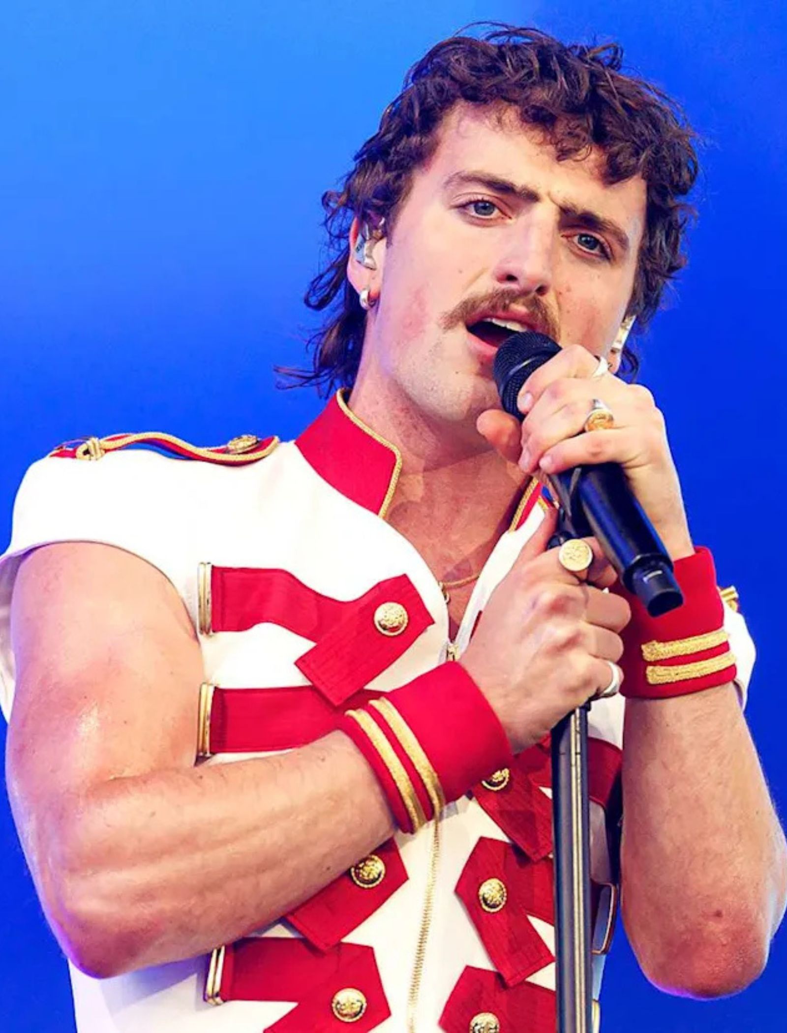 One of the rising pop artists in the world today is one with high energy, front-flipping on stage. Benson Boone channeled his inner Freddie Mercury and introduced himself to the Coachella crowd with his breathtaking and high-octane performance. The “Beautiful Things” singer wore a custom Dolce & Gabbana band uniform-inspired look in red. Although he may be getting online hate as of late, it’s undeniable that he has the talent and the performer mindset to make the crowd all pumped up to watch him live.