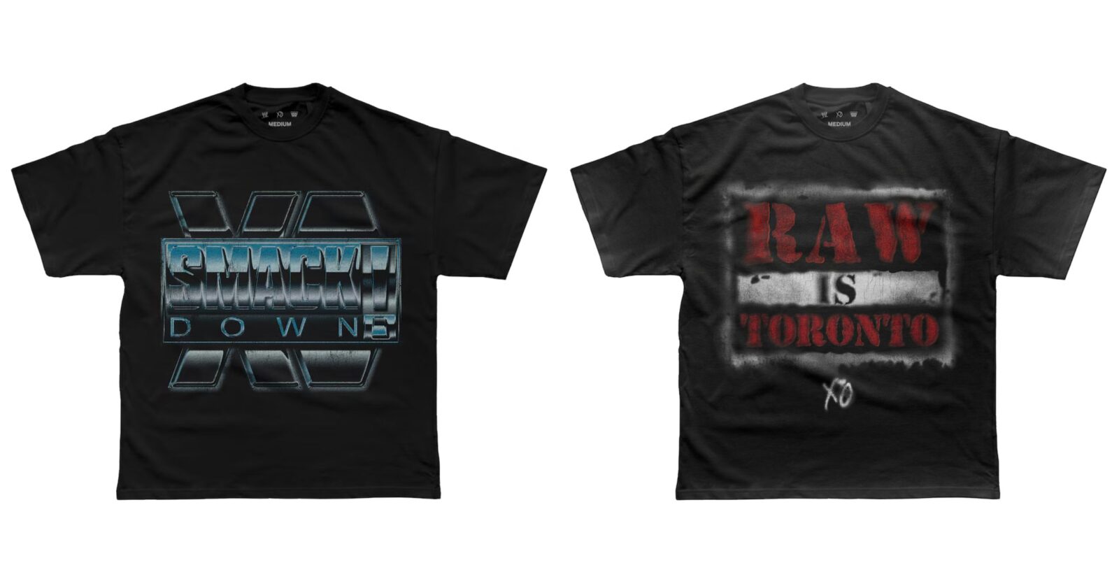 RAW fans get two exciting designs in the collection. The WWE x The Weeknd RAW Is Toronto T-shirt celebrates WWE’s return to the city, featuring a bold front statement alongside the classic logo used from 1997 to 2001 during the Attitude Era — widely regarded as the period when WWE broke into pop culture and reached the height of its popularity.