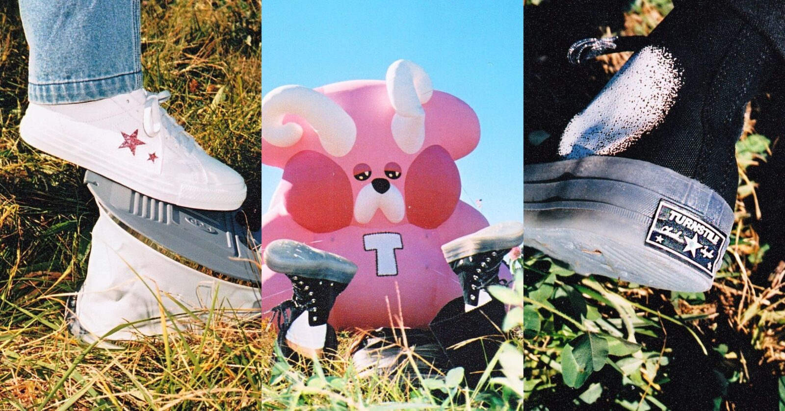 Grammy-nominated hardcore punk group Turnstile caused a bit of a frenzy amongst their fans earlier this year when they announced they were putting out limited edtion Converse sneakers in collaboration with the shoebrand. The collection featured two designs: an all-white one on a One Star Pro which features a pink star in reference to their breakout album Glow On as well as an all-black Chuck 70’s design which features paint-like graphics akin to the band’s tour posters at that time.