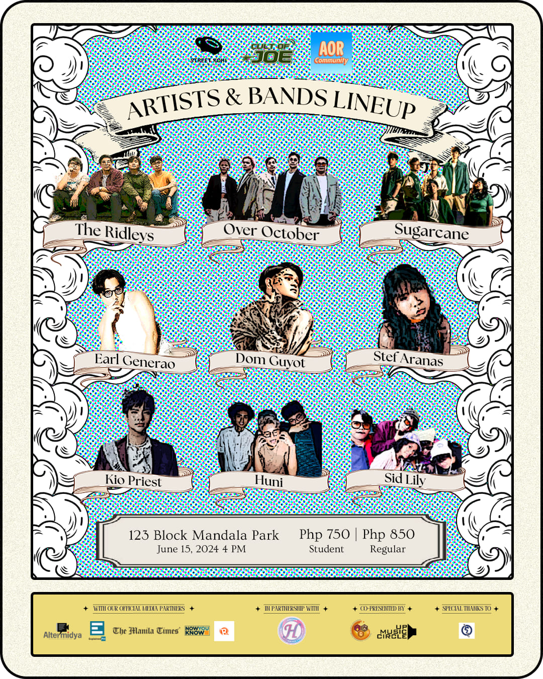 Cult of Joe (fans of Cup of Joe) and the Any Over Ridleys Community (fans of Any Name’s Okay, The Ridleys, and Over October) have joined forces to host a fundraising gig and film screening at 123 Block. It will be for the benefit of the homeless and elderly gays of Home of Golden Gays Manila.