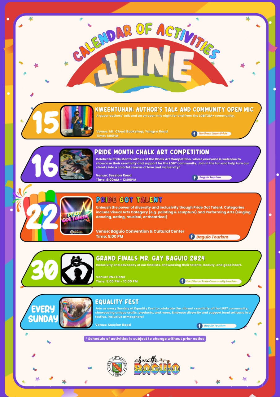 Baguio’s Tourism Office is hosting this year’s Pride Got Talent, a talent show where anyone can express their skills in visual and performing arts. Although no further details have been announced as of now, they released a full calendar of events for June earlier this month.