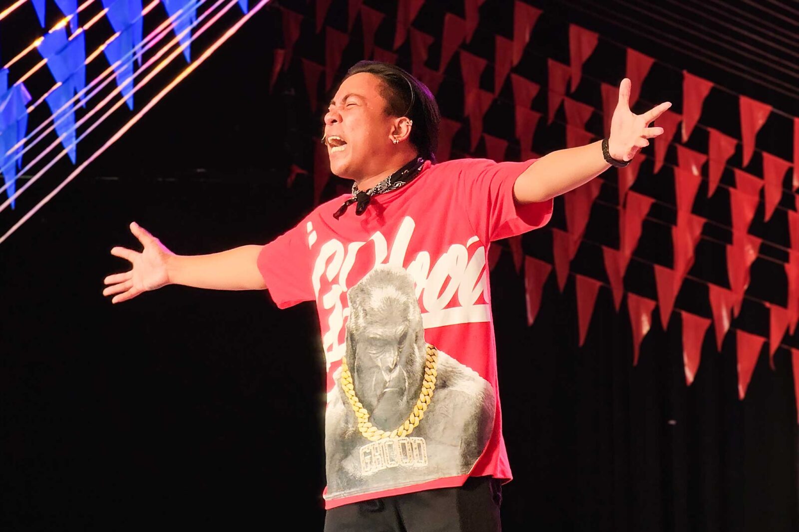 The finalists were given the freedom to choose between two topics to battle on: whether or not the use of social media is beneficial, or whether or not Filipinos should migrate and work abroad or stay at home. All 10 amped up the theatrics — many were dressed in urban streetwear, rapped over a beat, and dramatized their interactions with one another. They were feisty; unafraid to deliver every hard-hitting line with gusto.