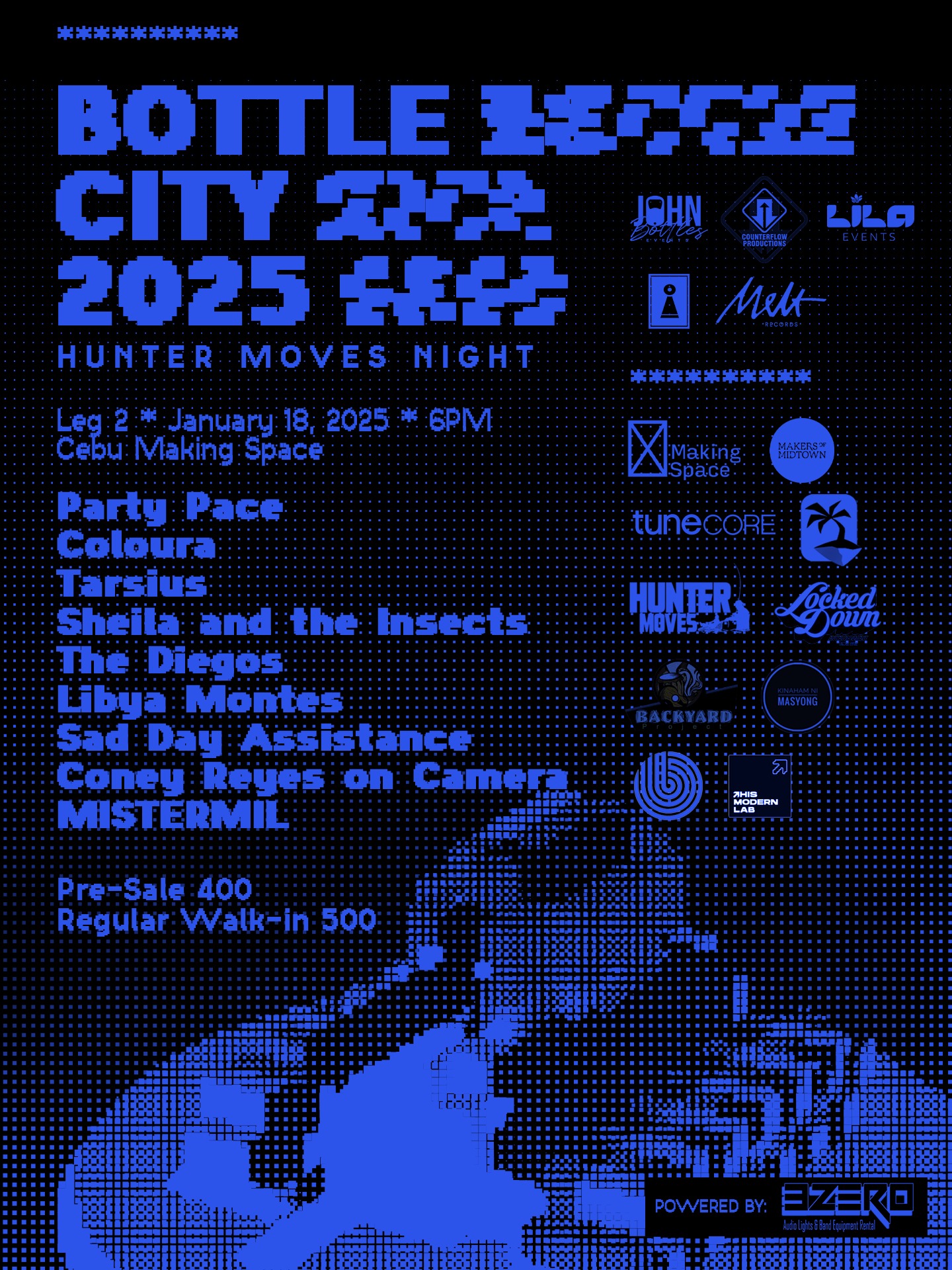Following its first leg, Bottle City 2025: Hunter Moves Night is moving to Cebu Making Space the next day for its second leg, featuring more sets from Party Pace, Tarsius, and The Diegos as well Cebu’s Coloura, Sheila And The Insects, Libya Montes, Sad Day Assistance, Coney Reyes on Camera, and MISTERMIL.