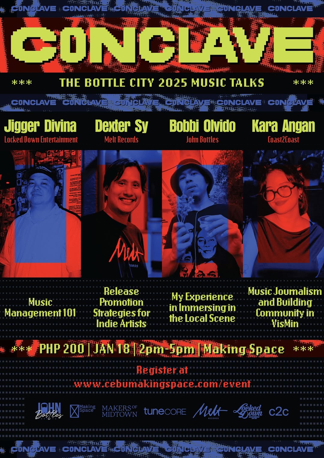 Alongside the two back-to-back gigs, Bottle City 2025 will also feature special music-related talks segments from four individuals involved in the indie music scene. Namely, these are Locked Down Entertainment’s Jigger Divina who will be talking about music management, Melt Records’ Dexter Sy on strategies concerning releasing and promoting music for indie artists, John Bottles’ Bobbi Olvido on his personal experiences immersing in the local scene, and Coast2Coast’s Kara Angan on music journalism as well as community building in VisMin scenes.