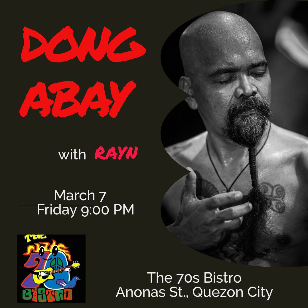Dong Abay is set to perform at the ’70s Bistro this month. The Filipino rock icon will be joined by Rayn as a special guest for the show.