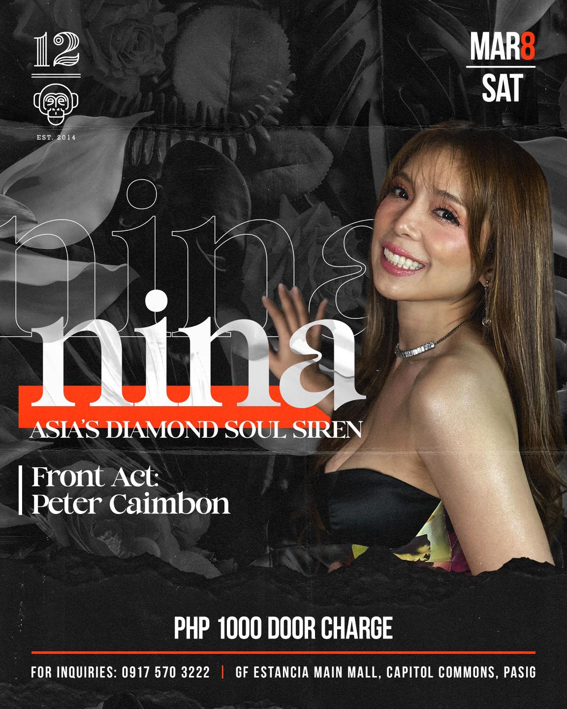 Nina is performing at 12 Monkeys this month. Asia’s Diamond Soul Siren will be joined by Peter Caimbon as a special guest for the night.
