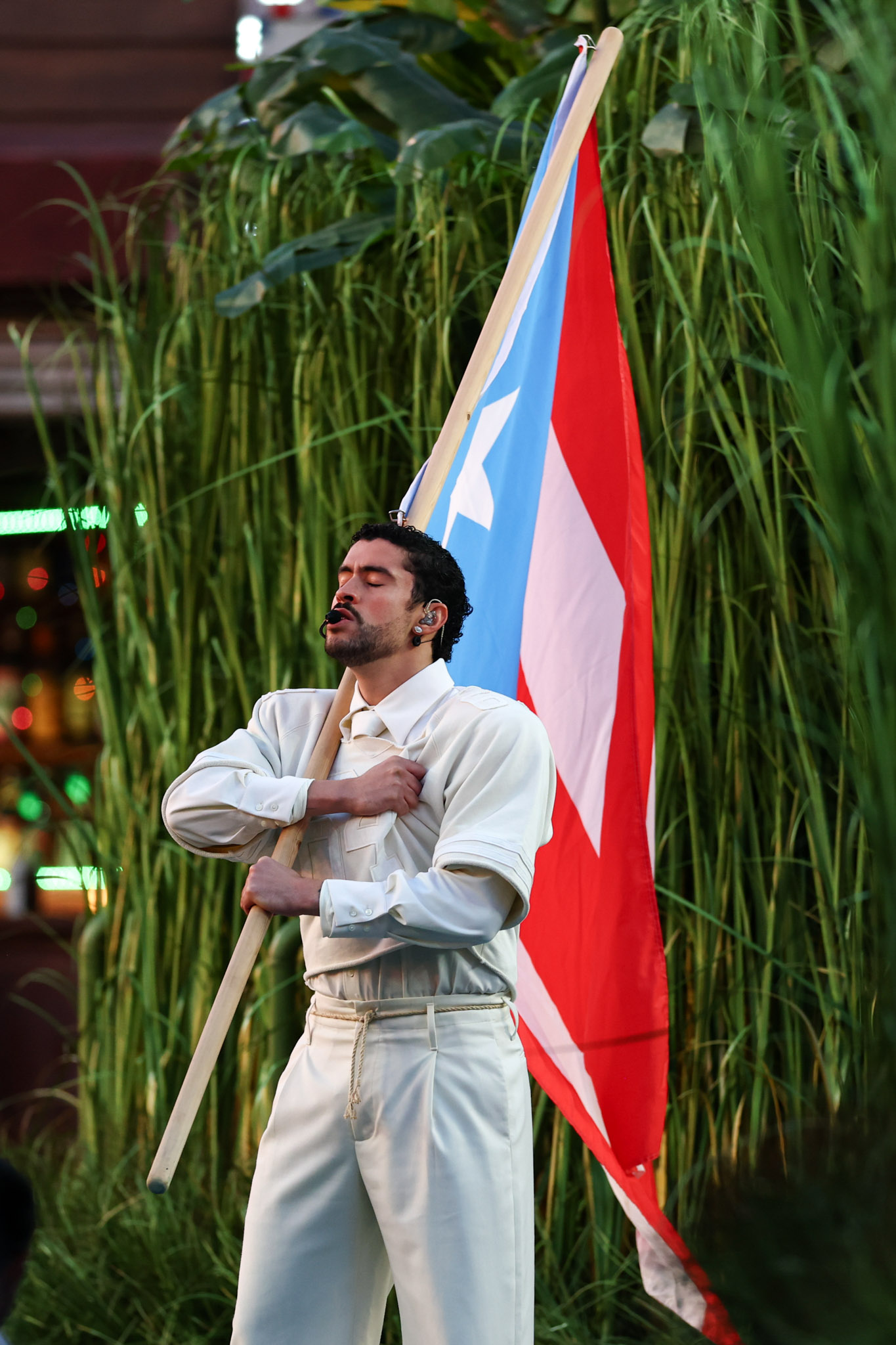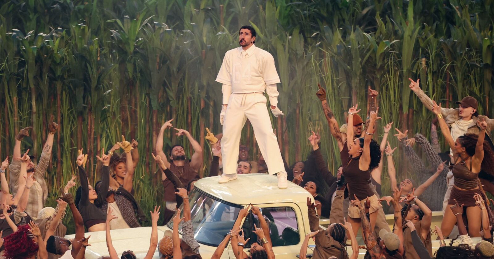 Even the giant sugarcane field, which featured some viejitos playing dominoes, a Villa’s Tacos stand, and Toñita, the owner of the Caribbean Social Club, was paired with a boxing match with real-life Puerto Rican boxers Xander Zayas and Emiliano Vargas, and of course, the iconic white plastic chairs featured on the cover of Debí Tirar Más Fotos. With how many references there were, future repeat viewings are sure to unpack more and more hidden messages and interpretations set to be dissected by fans and cultural commentators worldwide.