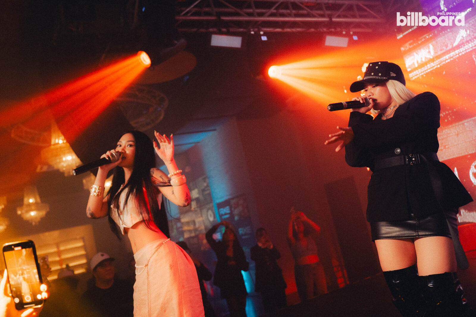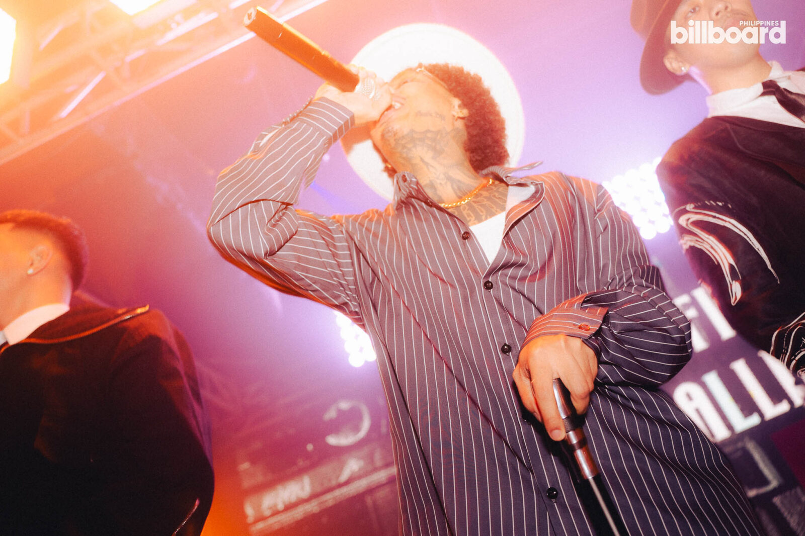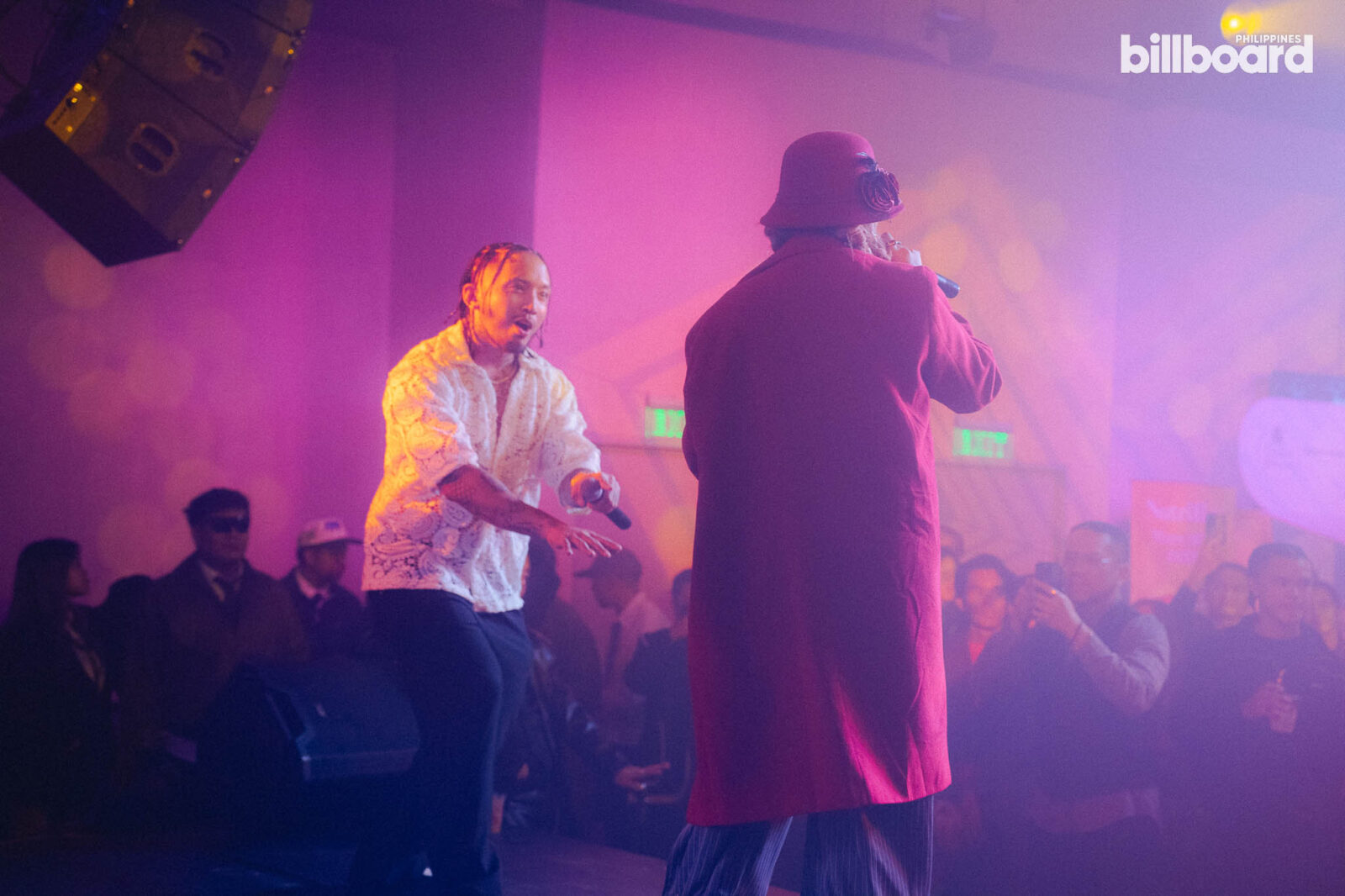 It wasn’t until RUSSELL! and Illest Morena spontaneously took the stage that the night began its array of impromptu performances. With an eagerness to bring their live music to the space, the two artists took off into a live rendition of their shared single “The Baddest.” Following the pair were the alumni of Billboard Philippines’ Pinoy Hip-Hop Class of 2024, O Side Mafia, who roused the audience with an unreleased track as an exciting preview of what’s to come. The trio then followed this up by pulling Paul n Ballin up on the stage for a live performance of “SMD,” and THUGSTA joined the rally of performances by taking over with his debut track “TOP SHOTTA.”