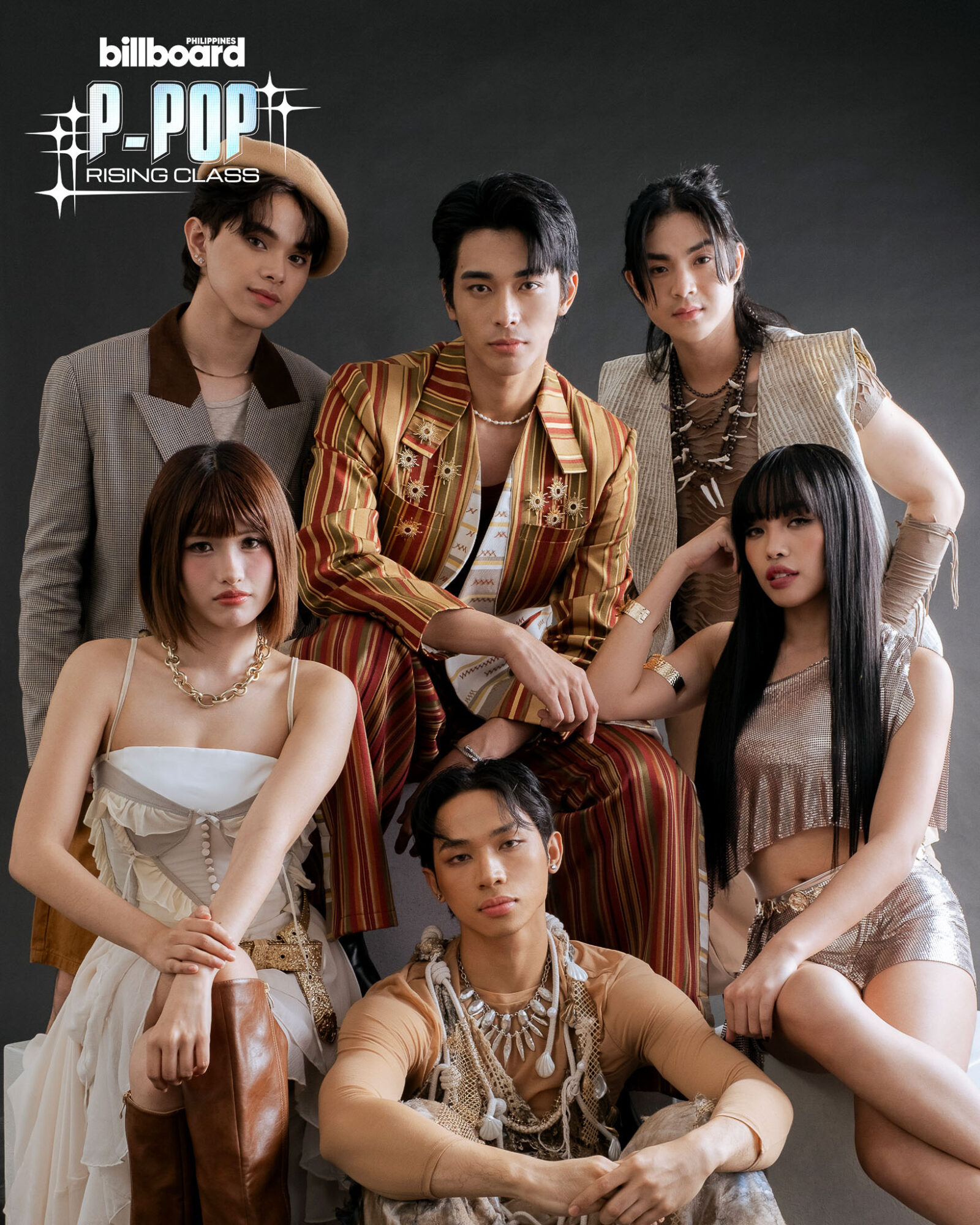 GAT’s Ethan, BGYO’s Gelo, VXON’s C13, KAIA’s Angela, ALAMAT’s Taneo, and G22’s AJ, photographed by Shaira Luna.