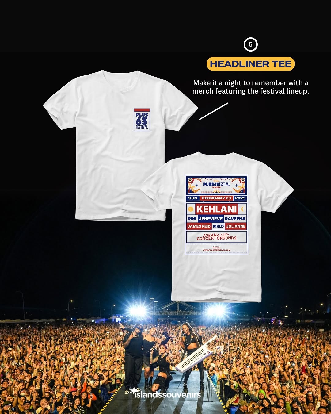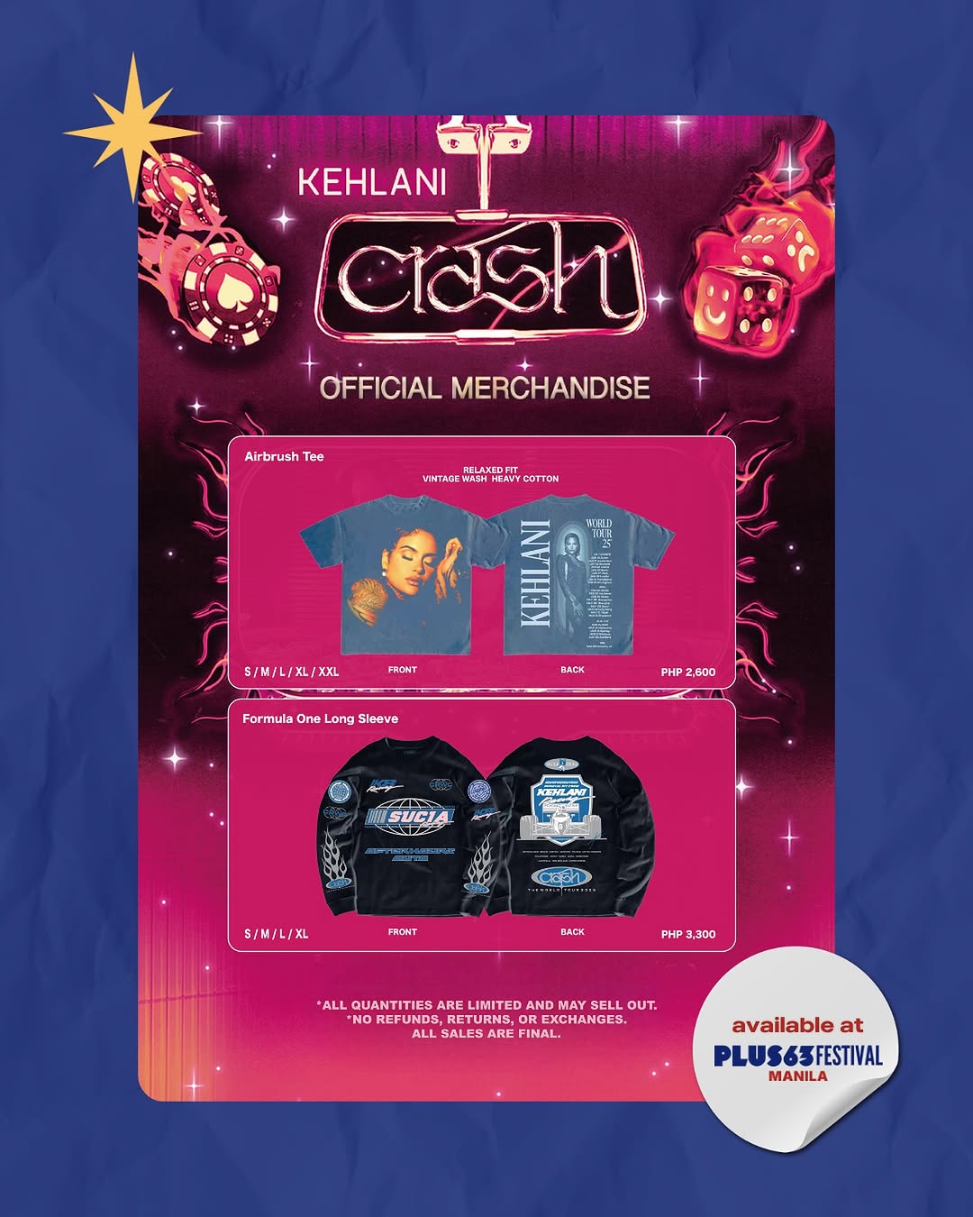 What better way to commemorate your experience at the first PLUS63 Festival Manila than by copping official merchandise? From the festival’s very own shirt and tote bag made in collaboration with Islands Souvenirs to Kehlani’s ‘Crash’ world tour goods, remember your time at this year’s PLUS63 in style.