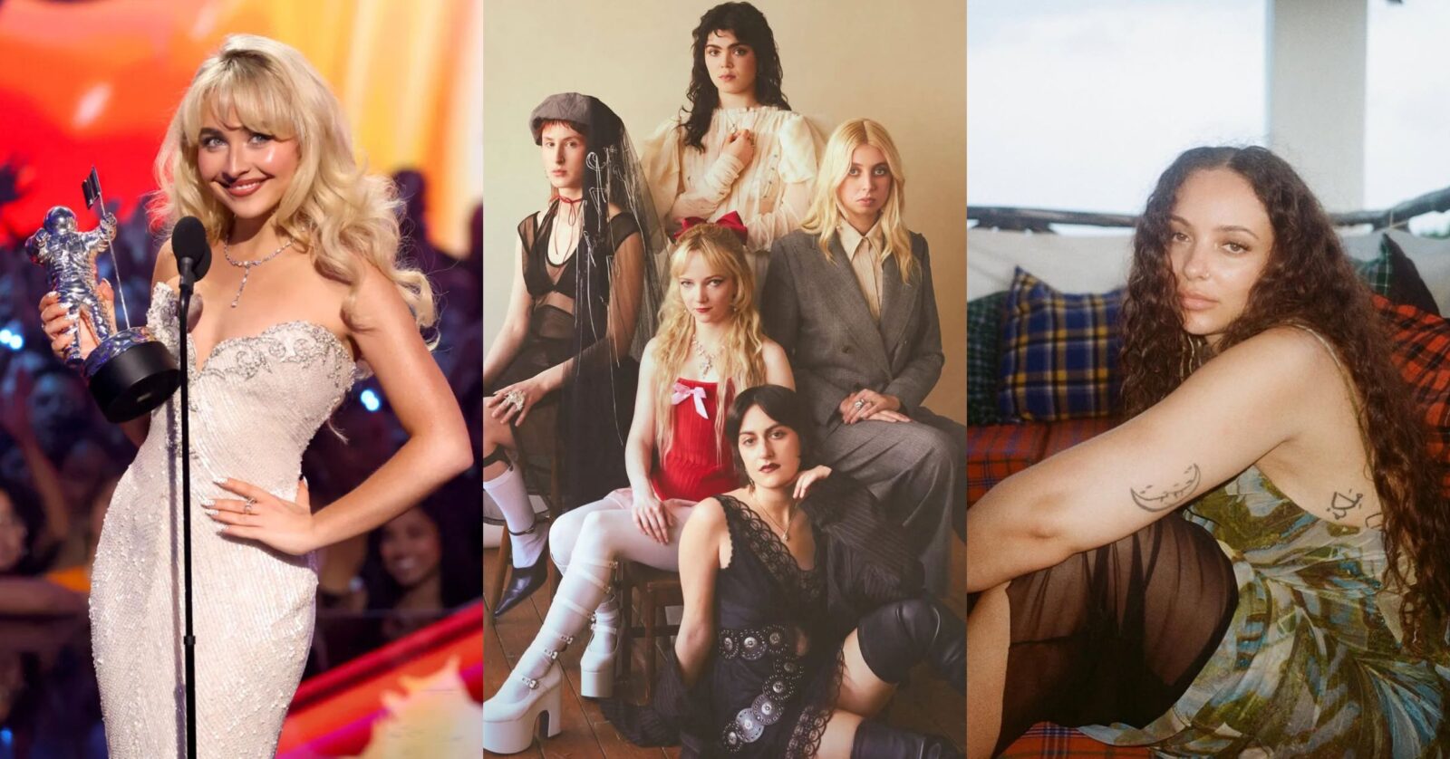 SABRINA CARPENTER, THE LAST DINNER PARTY, JADE: Courtesy of Getty Images, photographed by Mike Coppola/ @nytimes, photographed by Ellie Smith/ @jadethirlwall