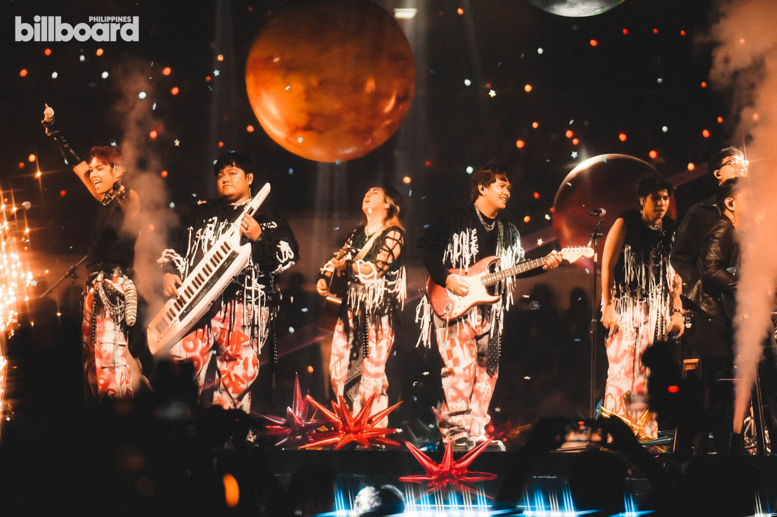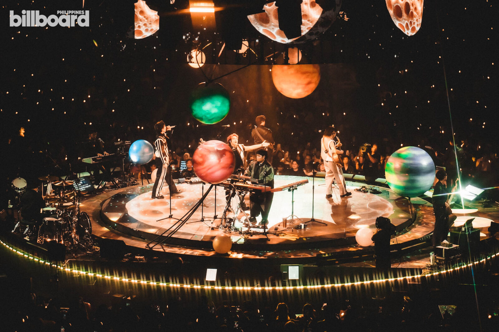When the time finally came, the band descended from a spaceship backstage and rushed toward the stage for the opening track of the night — taking the audience to the first planet of the journey, which was the Crimson Planet. Araneta erupted like a rocket launch at NASA, filled with deafening screams and roars from the crowd, and “Silakbo” was the perfect start to the cosmic adventure ahead. The production and stage design were on a different level, featuring a 360° stage setup and planets constantly in orbit, with Gian and Rapha circling as they sang their hearts out, joined by Xen on keys, Gab on electric guitar, and CJ on acoustic guitar. Right from the start, Paolo Valenciano’s direction showcased a show truly worthy of the big stage, and the opening performance clearly reflected that.