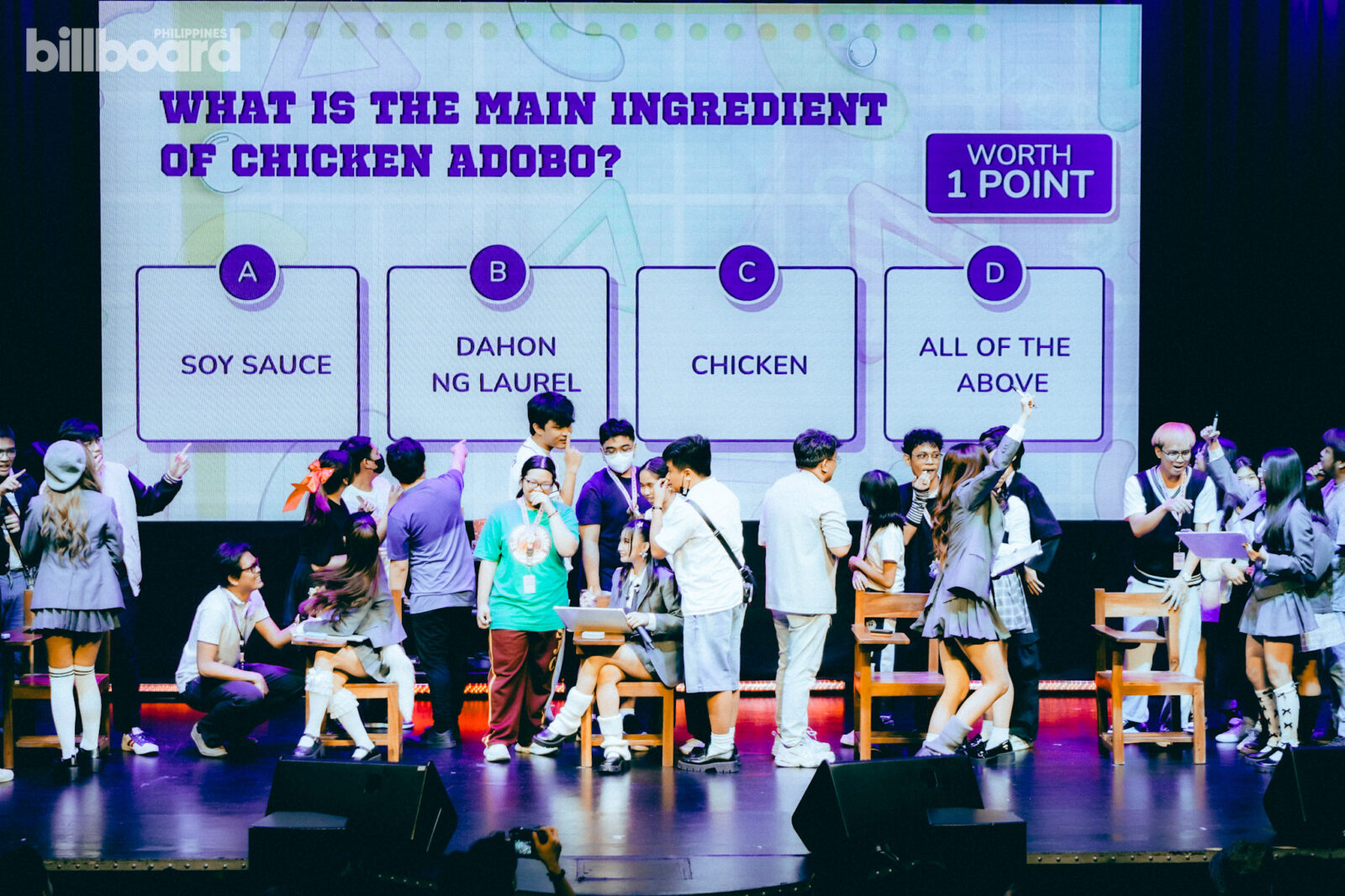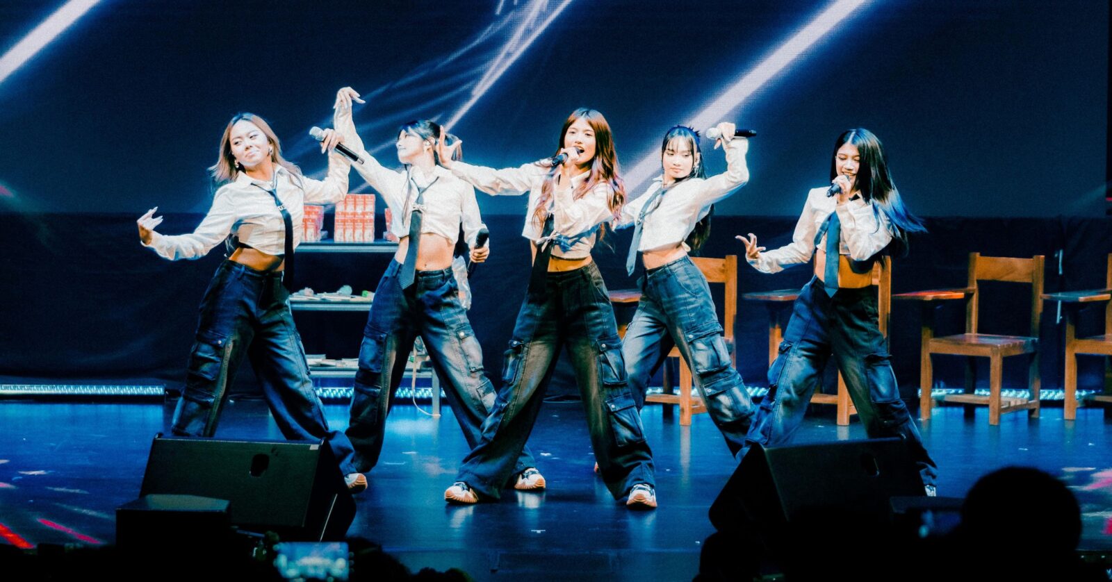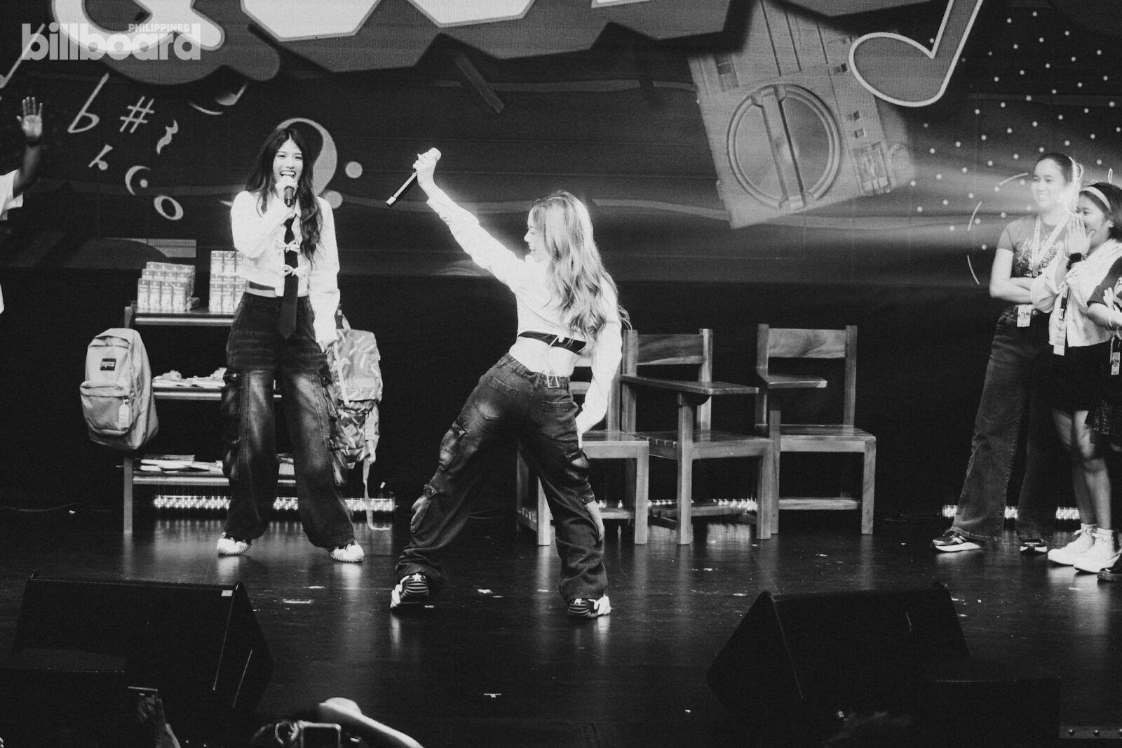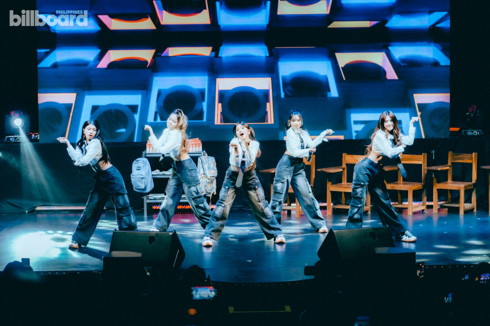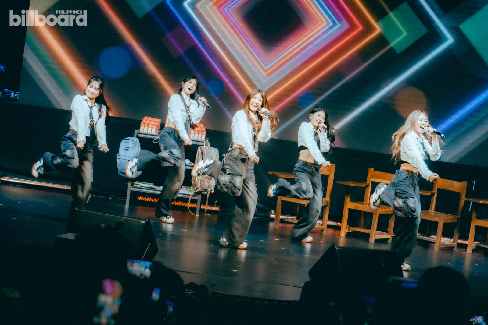 All of this, including the main concert proper later on, was happening against a simple stage design that was made to mimic a classroom – complete with the likes of school armchairs, small shelves and cabinets filled with books, backpacks, and even a whiteboard jokingly listing the group’s members for being “noisy” and such.