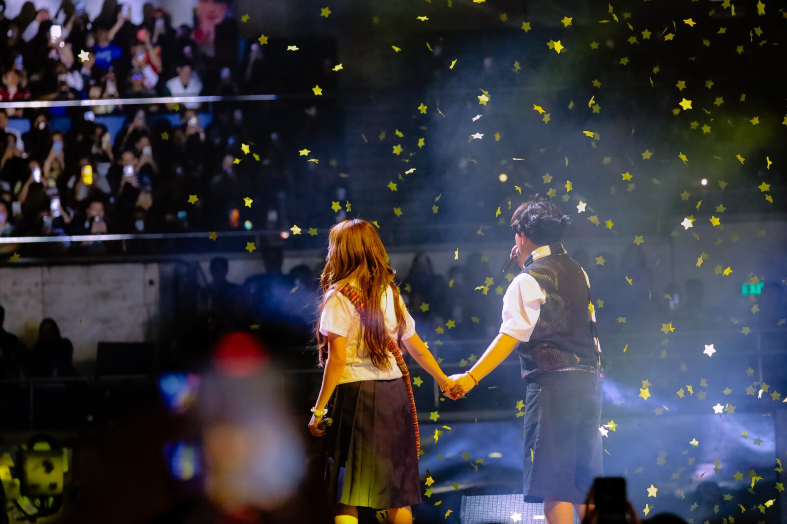 In celebration of the artist’s many milestones that night, fans showed up to the Araneta Coliseum dressed to the nines that night. While ‘Kolorcoaster: The Concert’ had no specific dress code, it was clear that everyone put intention into their outfits for the show — whether that be through custom-made costumes resembling Maki’s outfits in music videos or wearing outfits drenched in color from head to toe. Additionally, seen as active parts of the audience were some of the artist’s closest industry friends like TJ Monterde and KZ Tandingan, SB19’s Justin, BINI’s Gwen, Jhoanna, and Stacey, and many more.