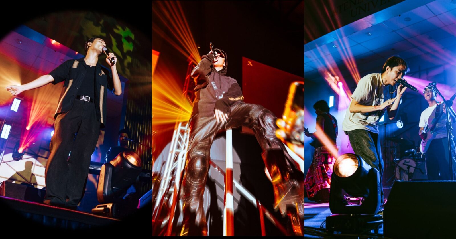 Charging up the stage afterwards was solo singer-songwriter Arthur Miguel, bringing some of his hottest hits to the campus tour. He danced confidently on stage, dedicating “GHINOST” to those who’ve been ghosted. For his next number, he sang a cover of “I’ll Never Let Go” as an homage to his late cat. Following this, heartbreak season was in the air once again as he sung “Ang Wakas” and “Lihim,” and ended his set by bringing out Albay native act dwta for their joint work “Tahan Na.”
